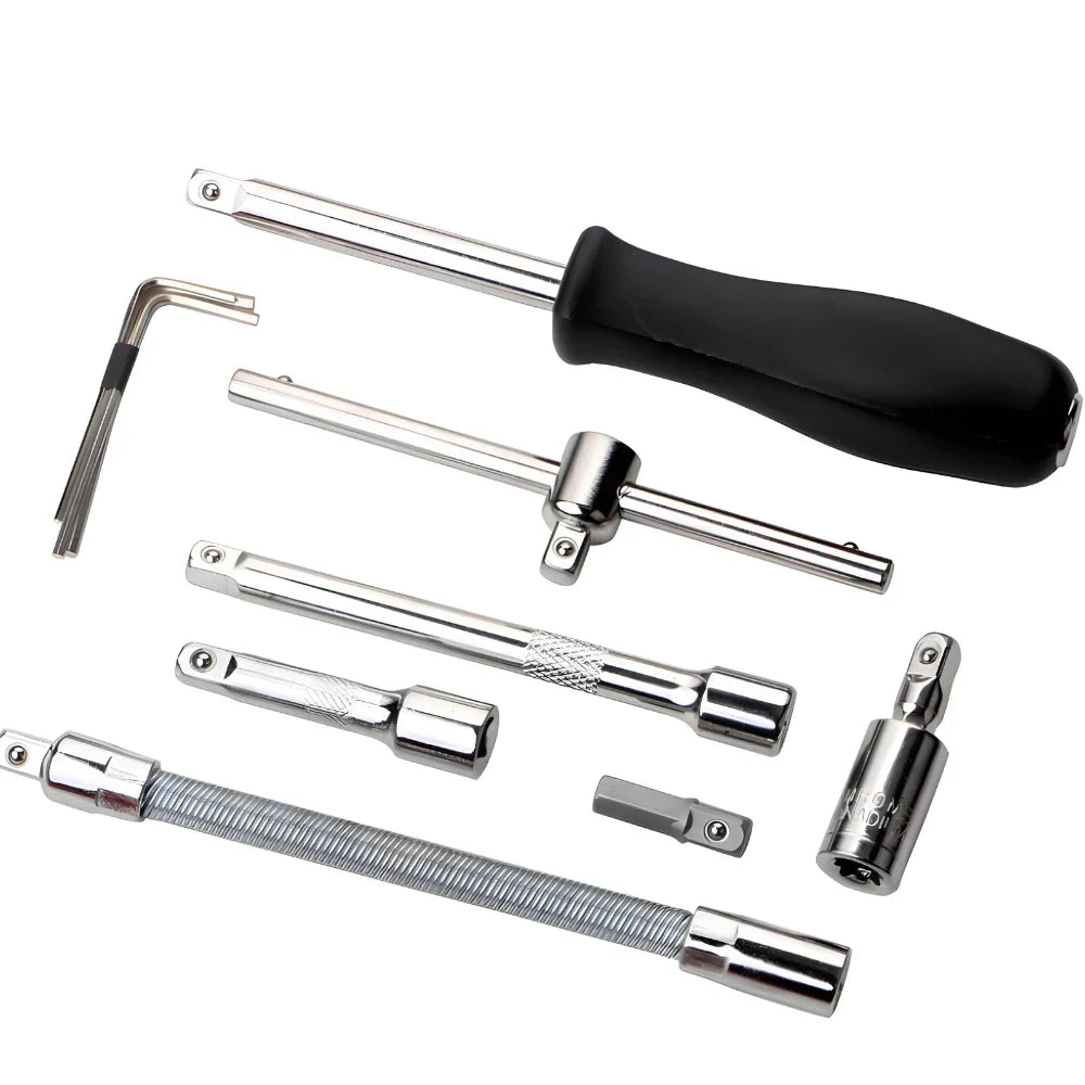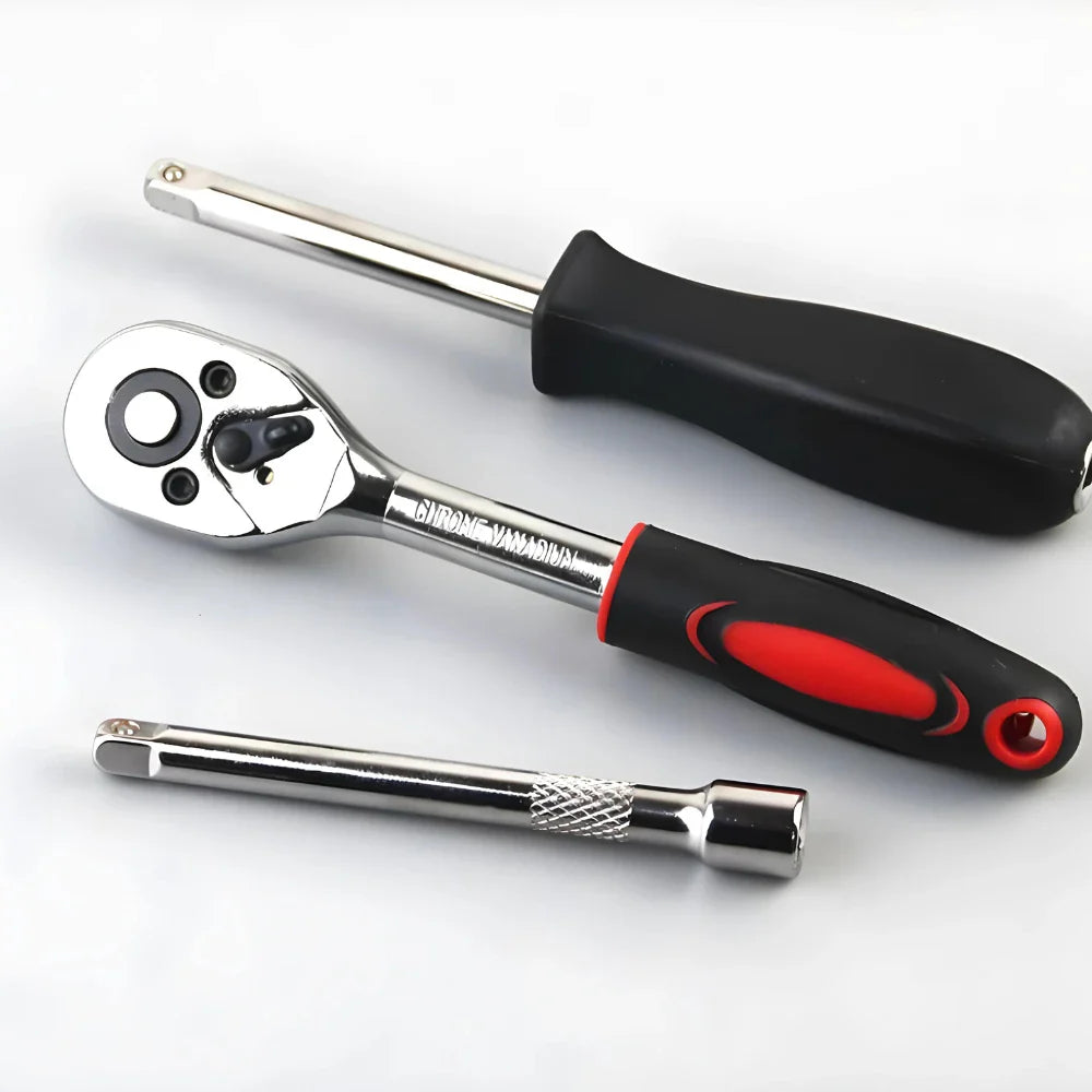 Completa e Versátil: Inclui soquetes de diversos tamanhos, catraca reversível, extensões e muito mais.